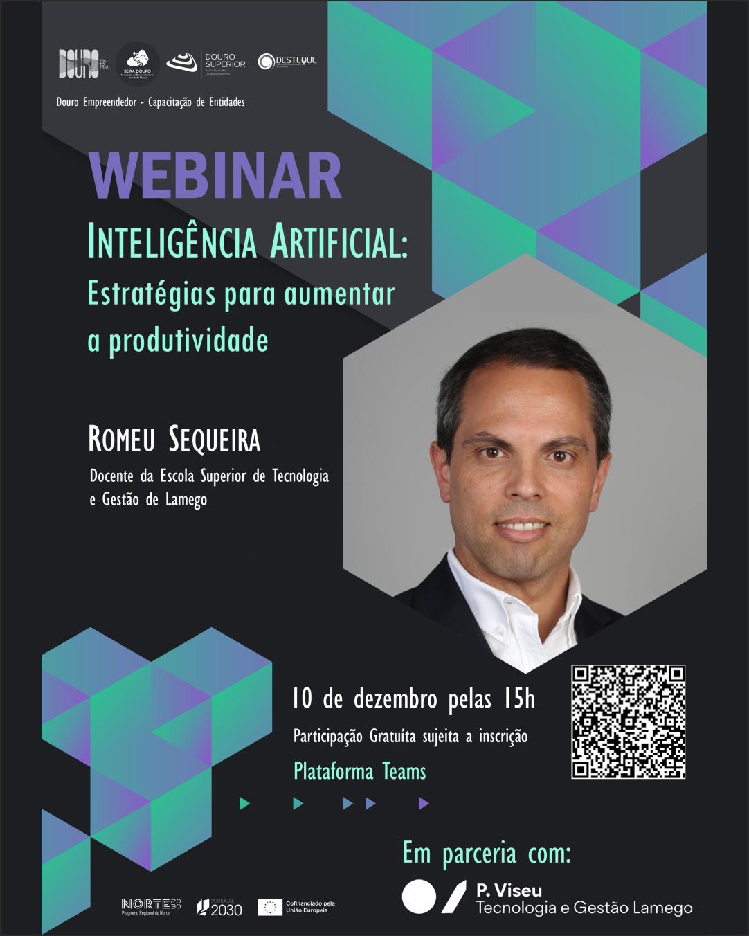 Integrado no Projeto Douro Empreendedor, e promovido pela Beira Douro, este webinar é uma oportunidade única para explorares como a Inteligência Artificial pode otimizar processos e elevar a tua produtividade.